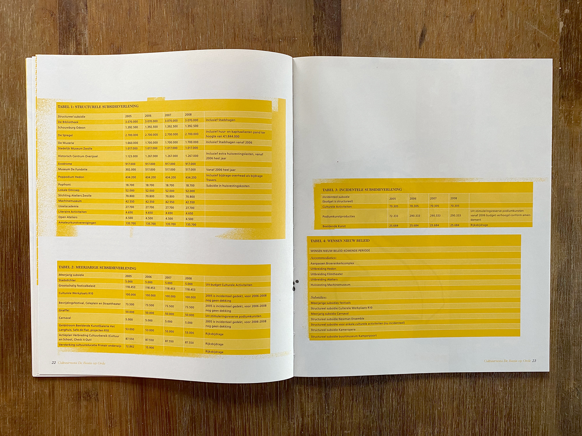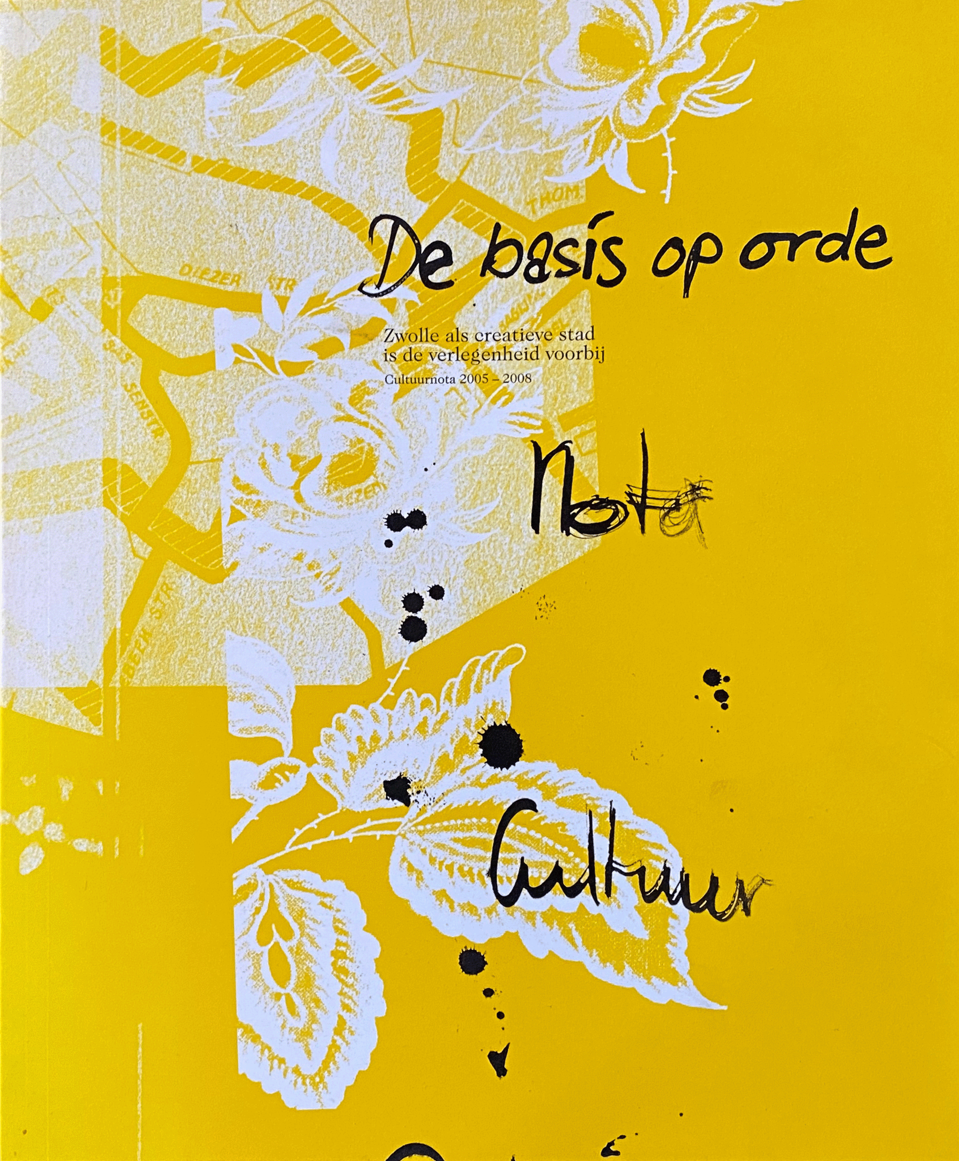De cultuurnota van de gemeente Zwolle is visueel opgebouwd uit collages gemaakt van beeldmateriaal afkomstig uit alle hoeken en gaten van Zwolse cultuurpodia, ateliers en kantoren. Van het historisch behang in even historische panden tot notities tot snapshots van voorstellingen. Over oefenen, fouten maken en opnieuw proberen. En over het belang van verhalen vertellen, overdragen en leren.